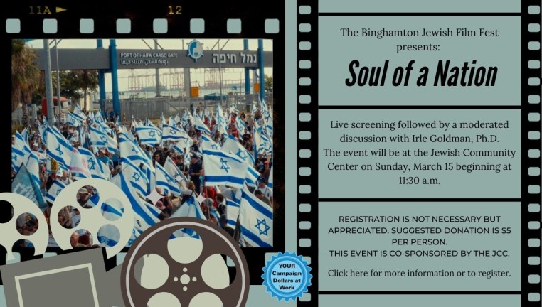 Join us for a live showing of "Soul of a Nation" at the Jewish Community Center on Sunday, March 15 beginning at 11:30 a.m. Irle Goldman, Ph.D. will host a moderated discussion of the film afterwards. Registration is not required, but appreciated. A suggested donation of $5 is appreciated as well.